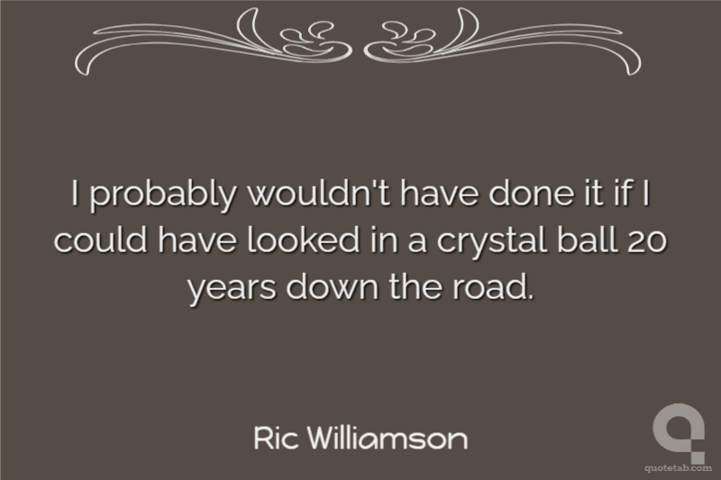 I probably wouldn't have done it if I could have looked in a crystal ball 20 years down the road.