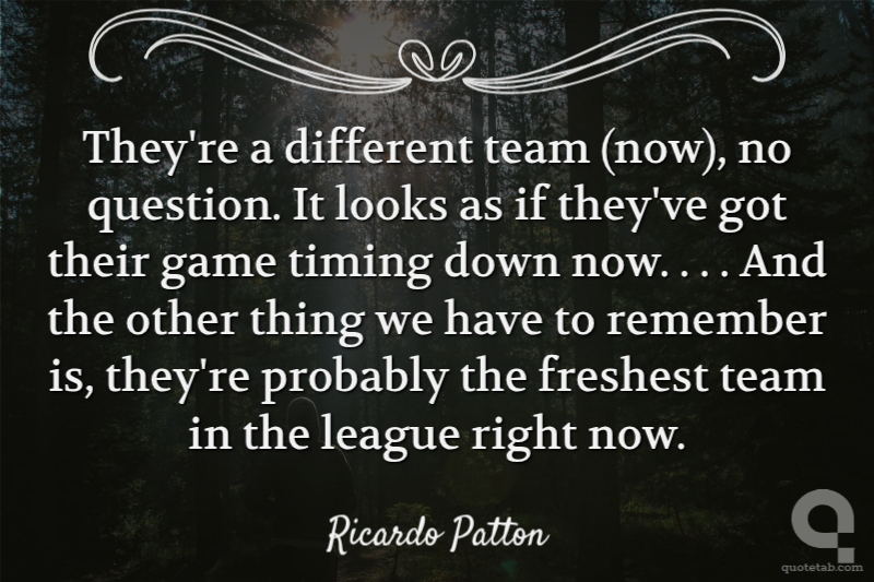 They're a different team (now), no question. It looks as if they've got their game timing down now. . . . And the other thing we have to remember is, they're probably the freshest team in the league right now.