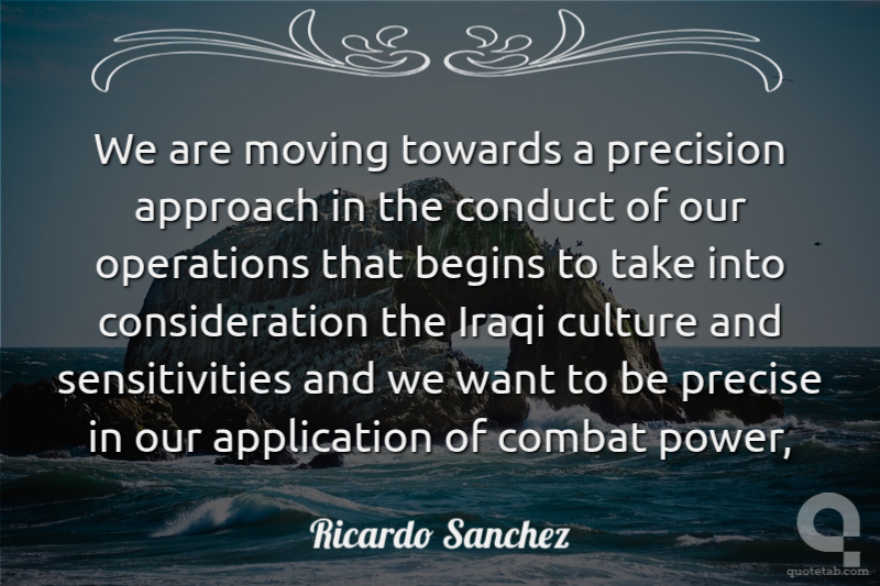 We are moving towards a precision approach in the conduct of our operations that begins to take into consideration the Iraqi culture and sensitivities and we want to be precise in our application of combat power,