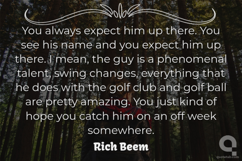 You always expect him up there. You see his name and you expect him up there. I mean, the guy is a phenomenal talent, swing changes, everything that he does with the golf club and golf ball are pretty amazing. You just kind of hope you catch him on an off week somewhere.