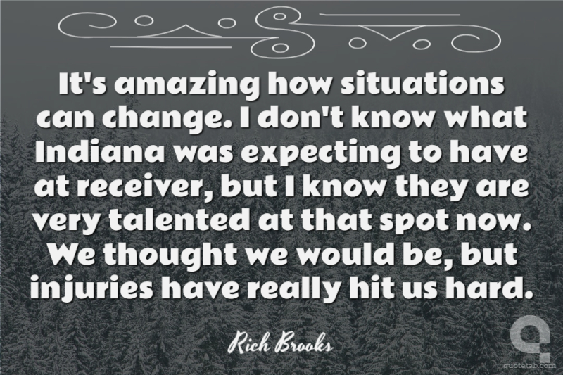 It's amazing how situations can change. I don't know what Indiana was expecting to have at receiver, but I know they are very talented at that spot now. We thought we would be, but injuries have really hit us hard.