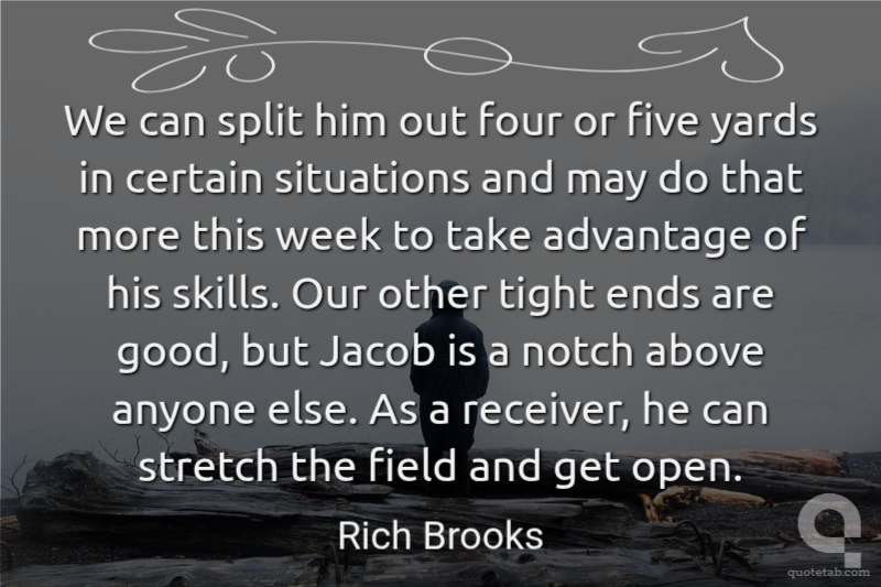 We can split him out four or five yards in certain situations and may do that more this week to take advantage of his skills. Our other tight ends are good, but Jacob is a notch above anyone else. As a receiver, he can stretch the field and get open.