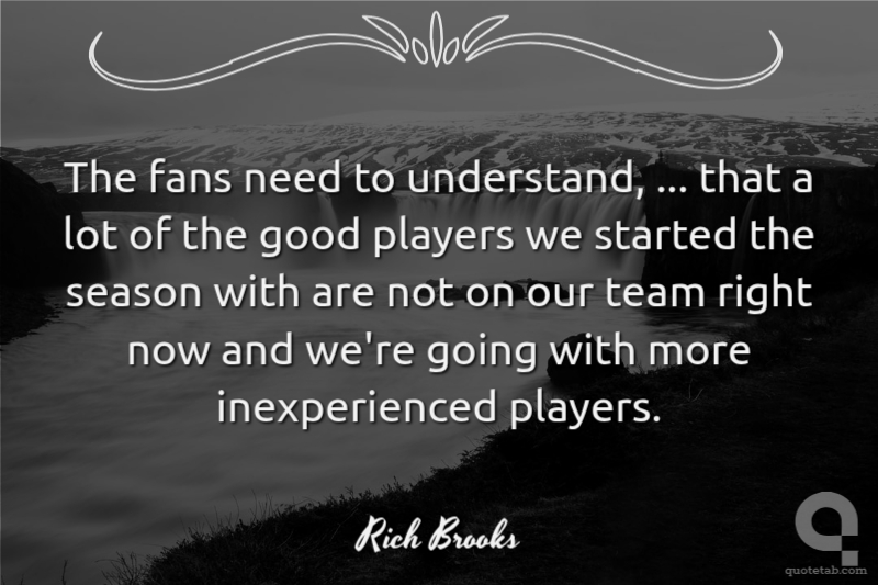 The fans need to understand, ... that a lot of the good players we started the season with are not on our team right now and we're going with more inexperienced players.