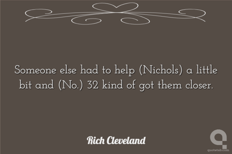 Someone else had to help (Nichols) a little bit and (No.) 32 kind of got them closer.