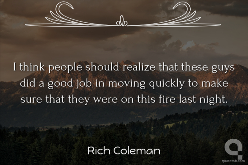 I think people should realize that these guys did a good job in moving quickly to make sure that they were on this fire last night.