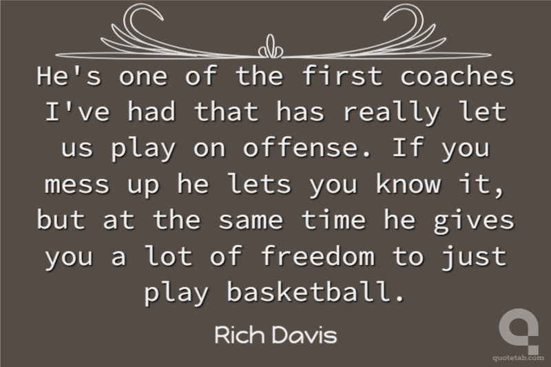 He's one of the first coaches I've had that has really let us play on offense. If you mess up he lets you know it, but at the same time he gives you a lot of freedom to just play basketball.