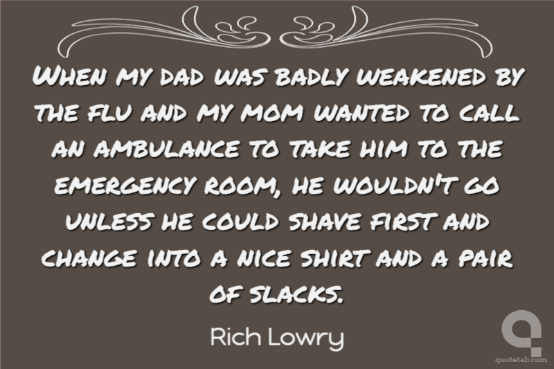 When my dad was badly weakened by the flu and my mom wanted to call an ambulance to take him to the emergency room, he wouldn't go unless he could shave first and change into a nice shirt and a pair of slacks.