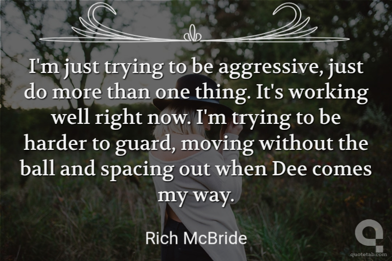 I'm just trying to be aggressive, just do more than one thing. It's working well right now. I'm trying to be harder to guard, moving without the ball and spacing out when Dee comes my way.