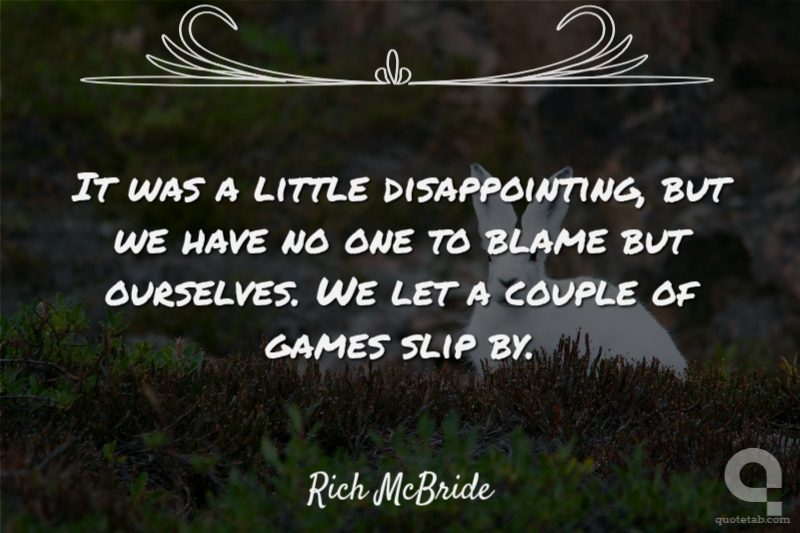 It was a little disappointing, but we have no one to blame but ourselves. We let a couple of games slip by.