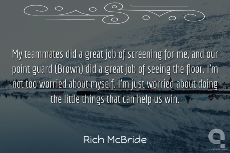 My teammates did a great job of screening for me, and our point guard (Brown) did a great job of seeing the floor. I'm not too worried about myself. I'm just worried about doing the little things that can help us win.