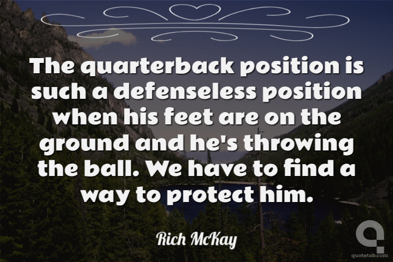 The quarterback position is such a defenseless position when his feet are on the ground and he's throwing the ball. We have to find a way to protect him.