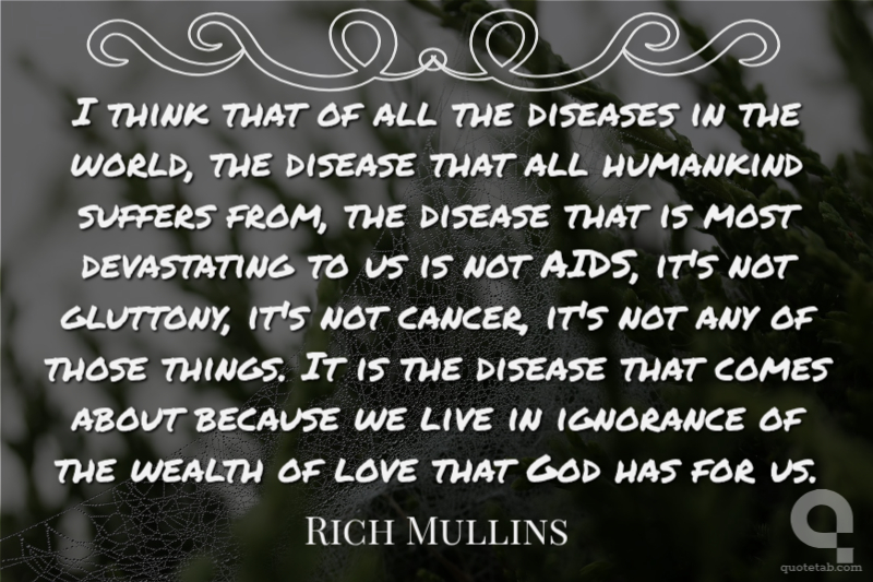 I think that of all the diseases in the world, the disease that all humankind suffers from, the disease that is most devastating to us is not AIDS, it's not gluttony, it's not cancer, it's not any of those things. It is the disease that comes about because we live in ignorance of the wealth of love that God has for us.