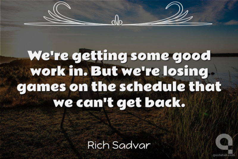 We're getting some good work in. But we're losing games on the schedule that we can't get back.