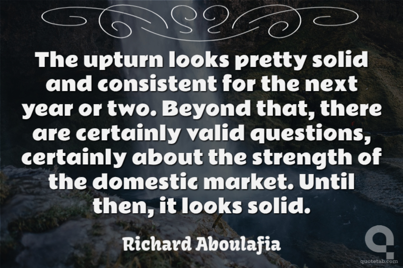 The upturn looks pretty solid and consistent for the next year or two. Beyond that, there are certainly valid questions, certainly about the strength of the domestic market. Until then, it looks solid.