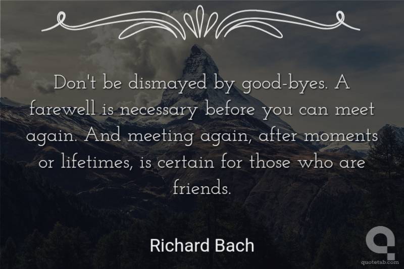 Don't be dismayed by good-byes. A farewell is necessary before you can meet again. And meeting again, after moments or lifetimes, is certain for those who are friends.