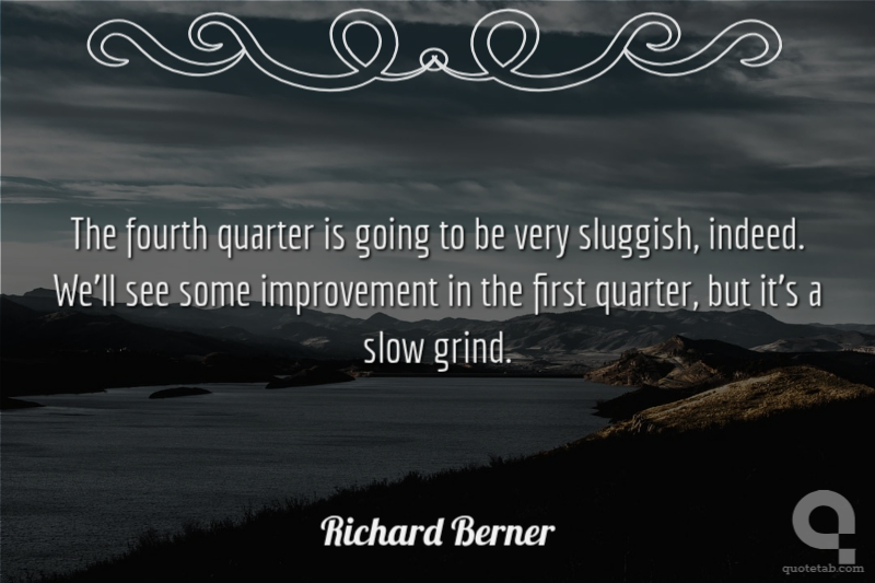 The fourth quarter is going to be very sluggish, indeed. We'll see some improvement in the first quarter, but it's a slow grind.