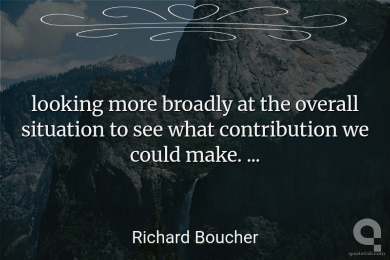 looking more broadly at the overall situation to see what contribution we could make. ...