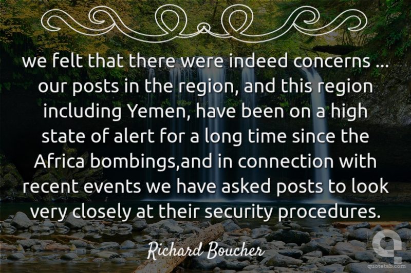we felt that there were indeed concerns ... our posts in the region, and this region including Yemen, have been on a high state of alert for a long time since the Africa bombings,and in connection with recent events we have asked posts to look very closely at their security procedures.