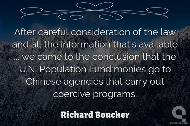 After careful consideration of the law and all the information that's available ... we came to the conclusion that the U.N. Population Fund monies go to Chinese agencies that carry out coercive programs.