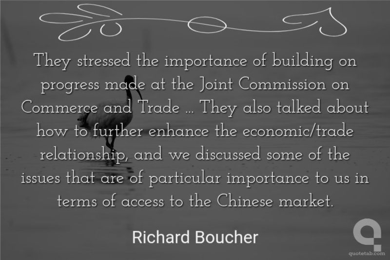 They stressed the importance of building on progress made at the Joint Commission on Commerce and Trade ... They also talked about how to further enhance the economic/trade relationship, and we discussed some of the issues that are of particular importance to us in terms of access to the Chinese market.