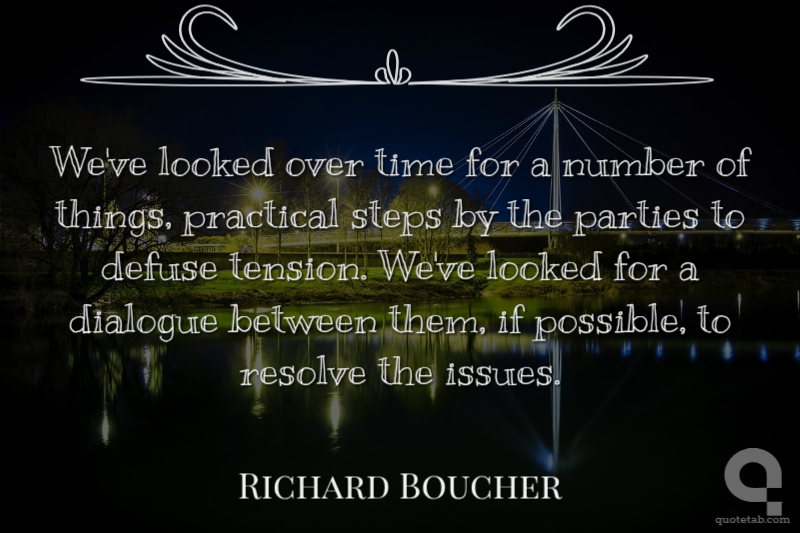 We've looked over time for a number of things, practical steps by the parties to defuse tension. We've looked for a dialogue between them, if possible, to resolve the issues.