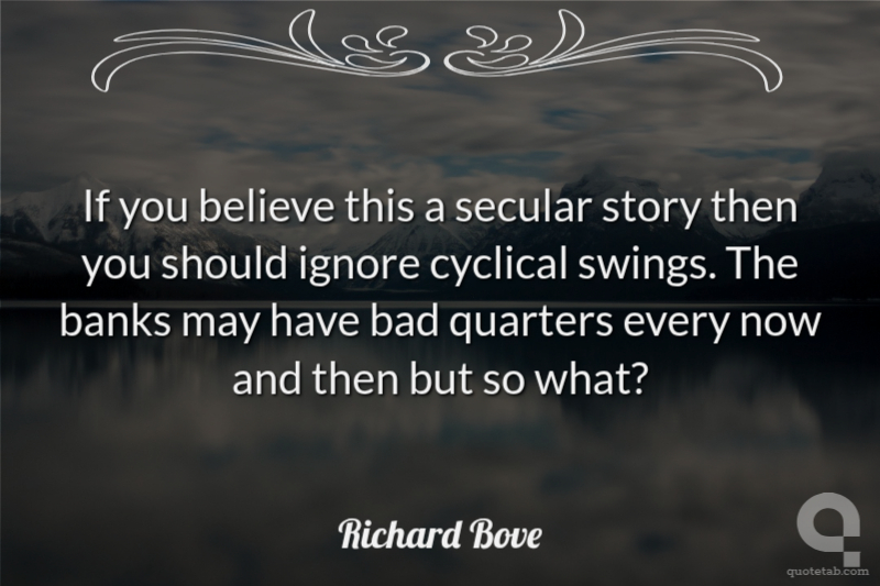 If you believe this a secular story then you should ignore cyclical swings. The banks may have bad quarters every now and then but so what?