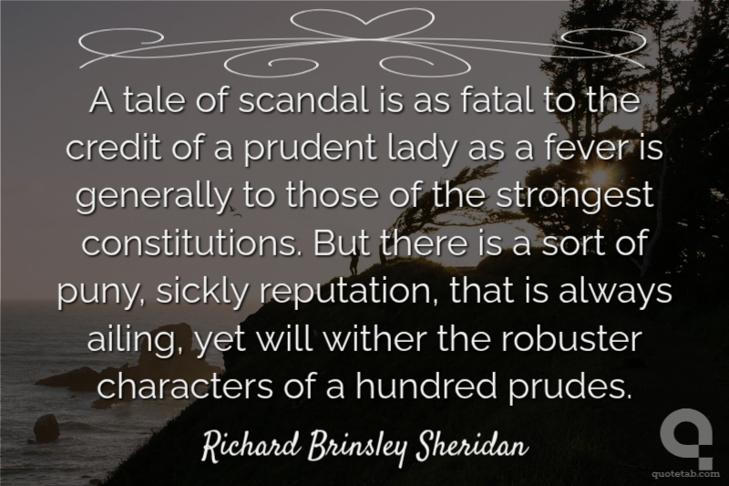 A tale of scandal is as fatal to the credit of a prudent lady as a fever is generally to those of the strongest constitutions. But there is a sort of puny, sickly reputation, that is always ailing, yet will wither the robuster characters of a hundred prudes.