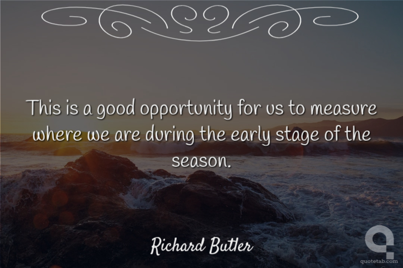This is a good opportunity for us to measure where we are during the early stage of the season.