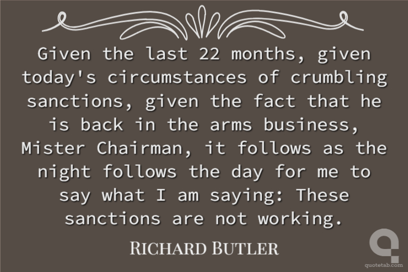 Given the last 22 months, given today's circumstances of crumbling sanctions, given the fact that he is back in the arms business, Mister Chairman, it follows as the night follows the day for me to say what I am saying: These sanctions are not working.