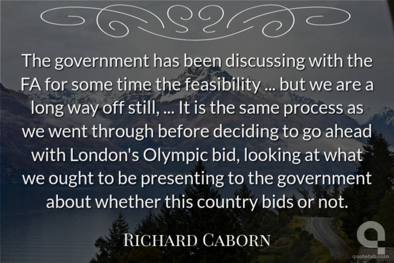 The government has been discussing with the FA for some time the feasibility ... but we are a long way off still, ... It is the same process as we went through before deciding to go ahead with London's Olympic bid, looking at what we ought to be presenting to the government about whether this country bids or not.