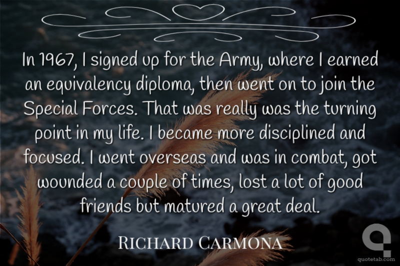In 1967, I signed up for the Army, where I earned an equivalency diploma, then went on to join the Special Forces. That was really was the turning point in my life. I became more disciplined and focused. I went overseas and was in combat, got wounded a couple of times, lost a lot of good friends but matured a great deal.
