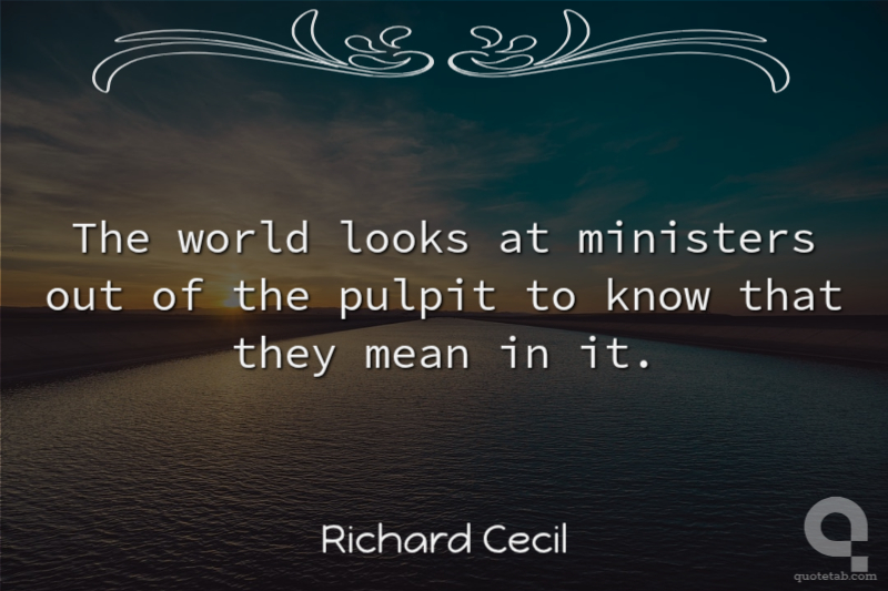 The world looks at ministers out of the pulpit to know that they mean in it.