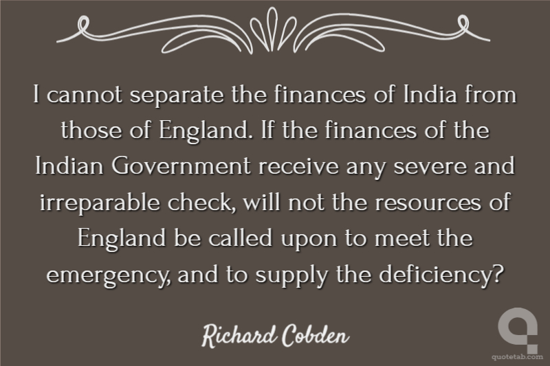 I cannot separate the finances of India from those of England. If the finances of the Indian Government receive any severe and irreparable check, will not the resources of England be called upon to meet the emergency, and to supply the deficiency?