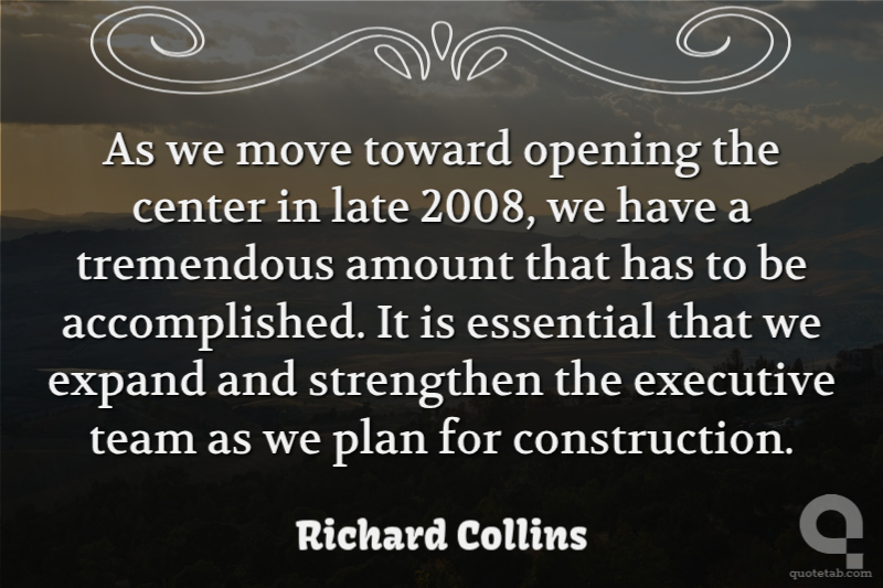 As we move toward opening the center in late 2008, we have a tremendous amount that has to be accomplished. It is essential that we expand and strengthen the executive team as we plan for construction.