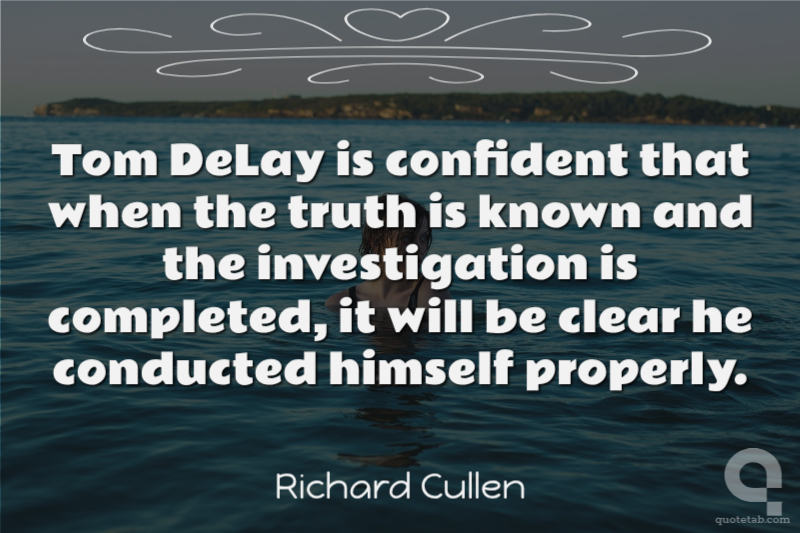 Tom DeLay is confident that when the truth is known and the investigation is completed, it will be clear he conducted himself properly.