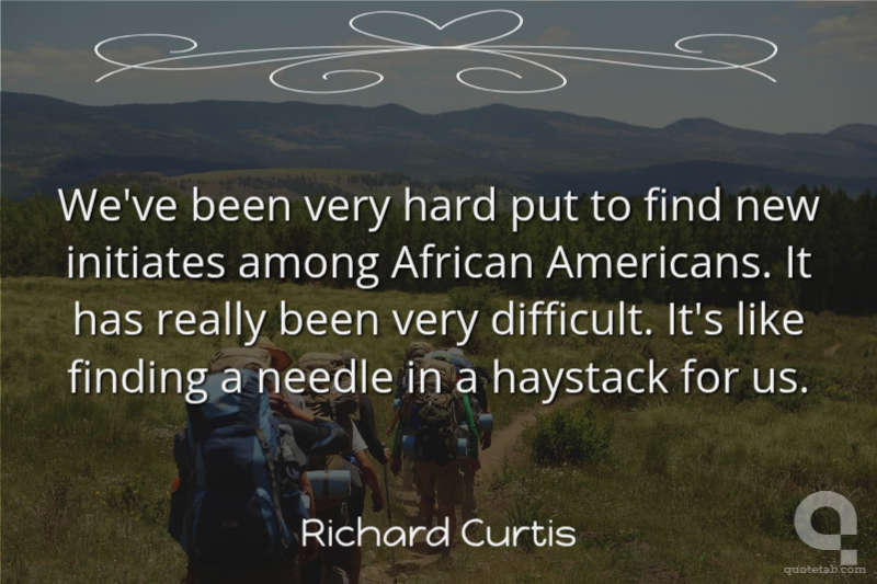 We've been very hard put to find new initiates among African Americans. It has really been very difficult. It's like finding a needle in a haystack for us.