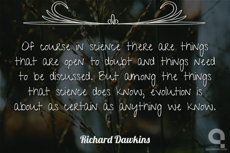 Of course in science there are things that are open to doubt and things need to be discussed. But among the things that science does know, evolution is about as certain as anything we know.