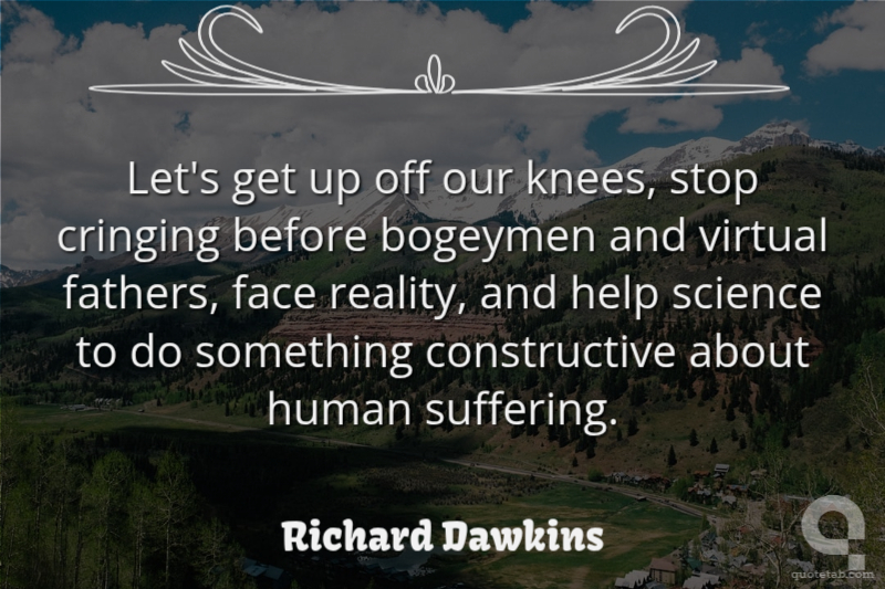 Let's get up off our knees, stop cringing before bogeymen and virtual fathers, face reality, and help science to do something constructive about human suffering.