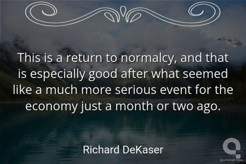 This is a return to normalcy, and that is especially good after what seemed like a much more serious event for the economy just a month or two ago.
