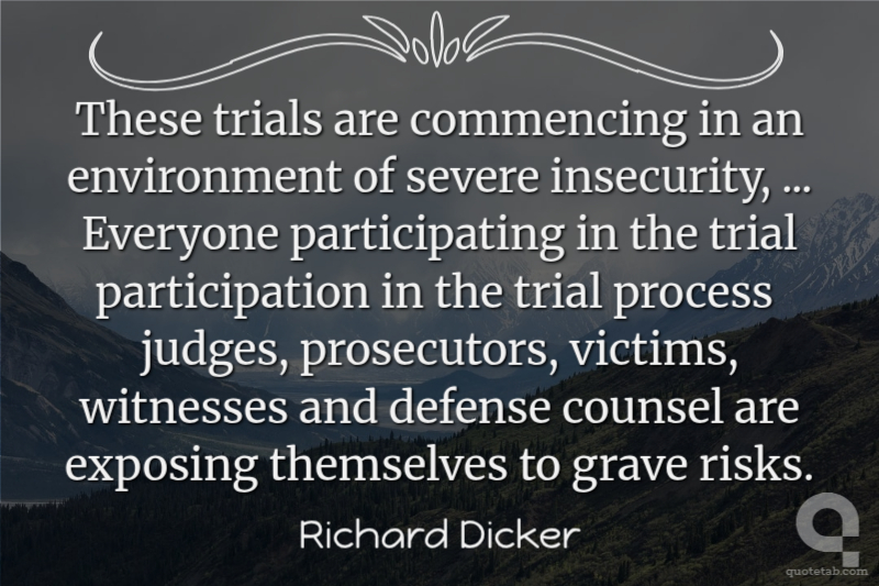These trials are commencing in an environment of severe insecurity, ... Everyone participating in the trial participation in the trial process judges, prosecutors, victims, witnesses and defense counsel are exposing themselves to grave risks.
