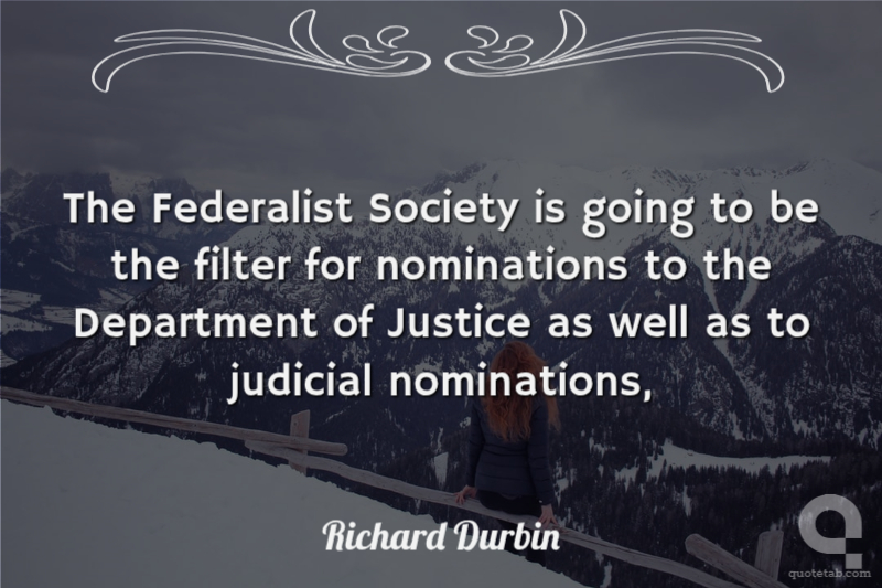 The Federalist Society is going to be the filter for nominations to the Department of Justice as well as to judicial nominations,