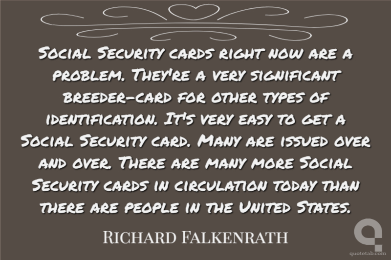 Social Security cards right now are a problem. They're a very significant breeder-card for other types of identification. It's very easy to get a Social Security card. Many are issued over and over. There are many more Social Security cards in circulation today than there are people in the United States.