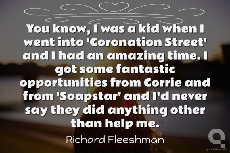 You know, I was a kid when I went into 'Coronation Street' and I had an amazing time. I got some fantastic opportunities from Corrie and from 'Soapstar' and I'd never say they did anything other than help me.