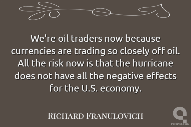 We're oil traders now because currencies are trading so closely off oil. All the risk now is that the hurricane does not have all the negative effects for the U.S. economy.