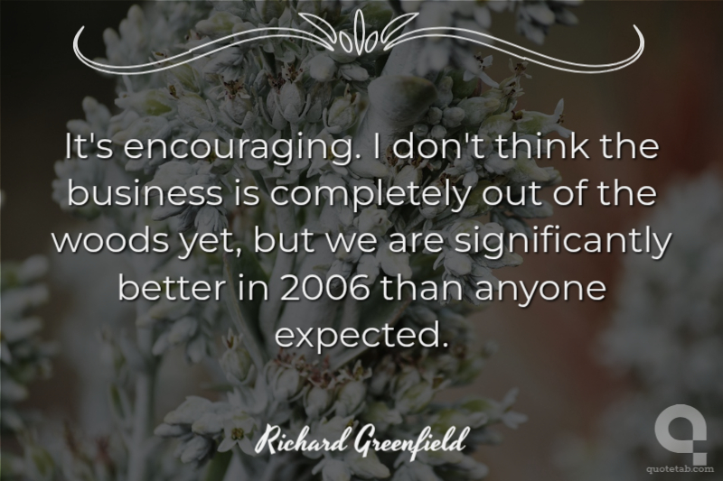 It's encouraging. I don't think the business is completely out of the woods yet, but we are significantly better in 2006 than anyone expected.