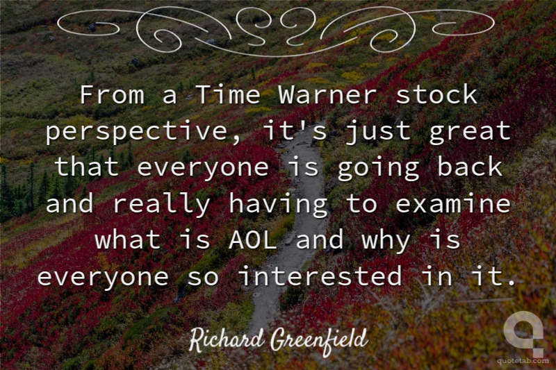 From a Time Warner stock perspective, it's just great that everyone is going back and really having to examine what is AOL and why is everyone so interested in it.