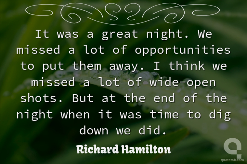 It was a great night. We missed a lot of opportunities to put them away. I think we missed a lot of wide-open shots. But at the end of the night when it was time to dig down we did.