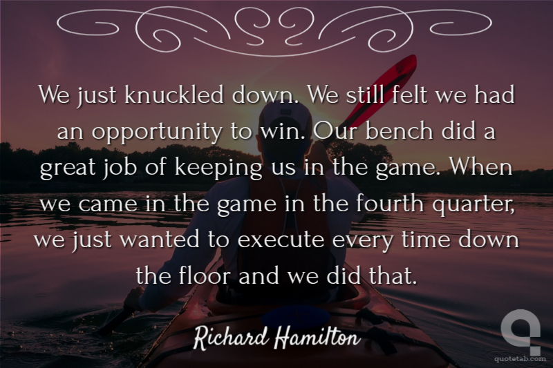 We just knuckled down. We still felt we had an opportunity to win. Our bench did a great job of keeping us in the game. When we came in the game in the fourth quarter, we just wanted to execute every time down the floor and we did that.