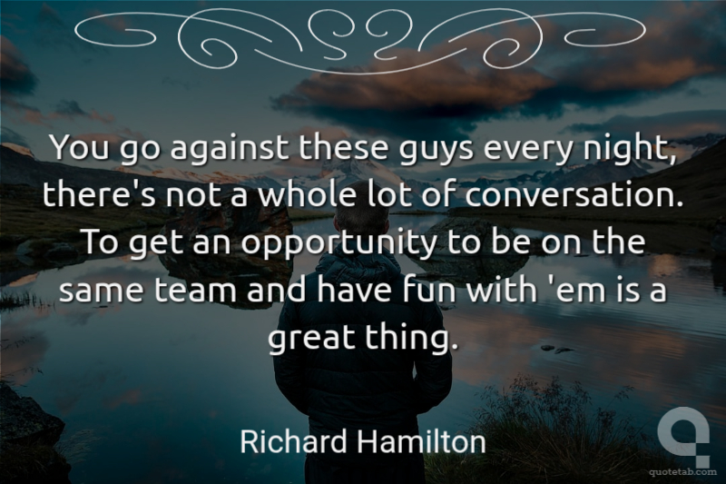 You go against these guys every night, there's not a whole lot of conversation. To get an opportunity to be on the same team and have fun with 'em is a great thing.