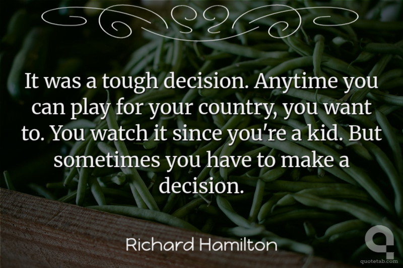 It was a tough decision. Anytime you can play for your country, you want to. You watch it since you're a kid. But sometimes you have to make a decision.